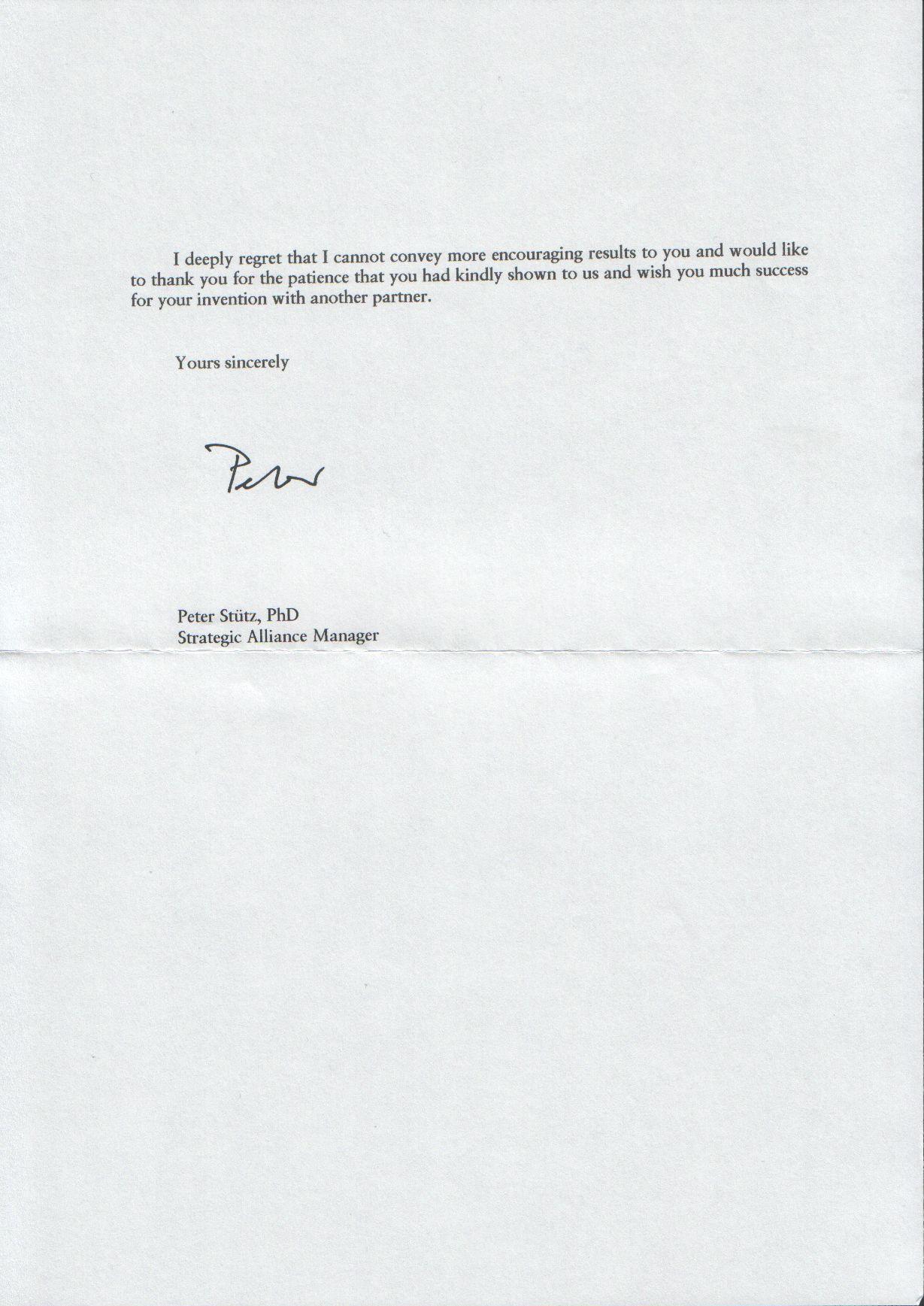 After this confirmation I was informed that animal studies would begin shortly. Unfortunately after this point Novartis became less than cooperative and started wasting time and exercised blatant bad science. It later became obvious that my own patent attorneys were colluding with Novartis and helping them to my detriment.