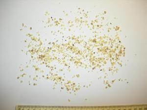 500 seeds after being blended in yoghurt then washed and dried in a sieve to show mainly broken seeds