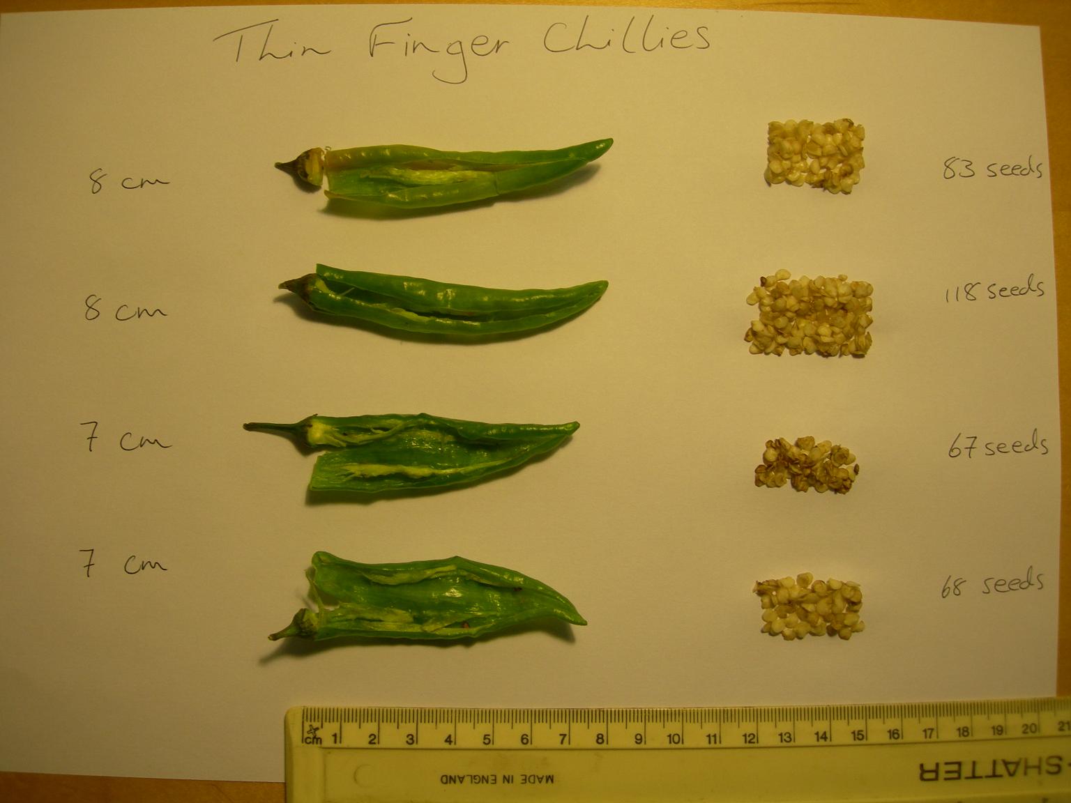 Thin chilli with seeds removed and counted
